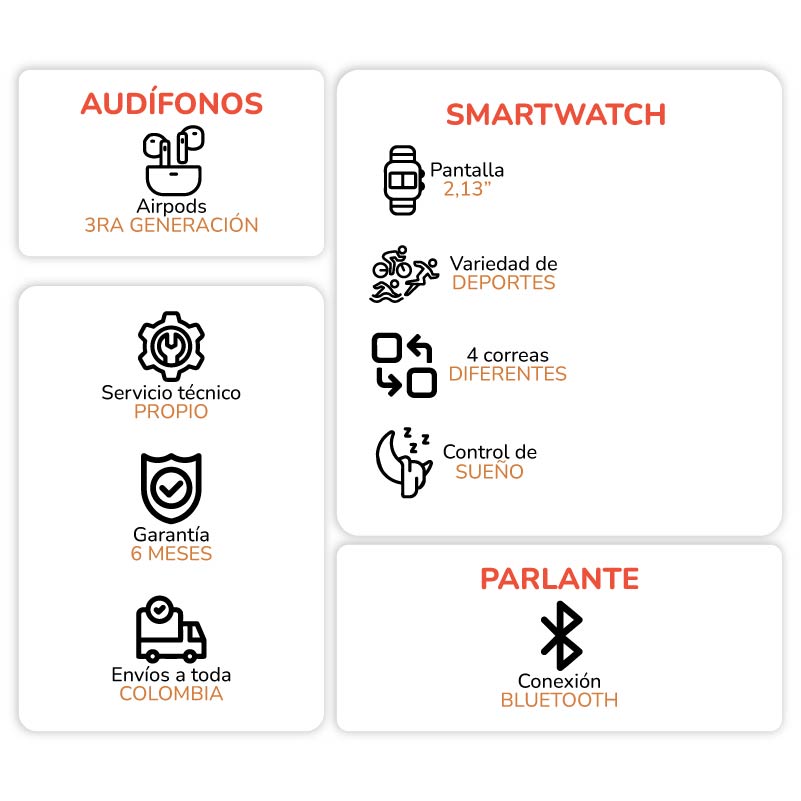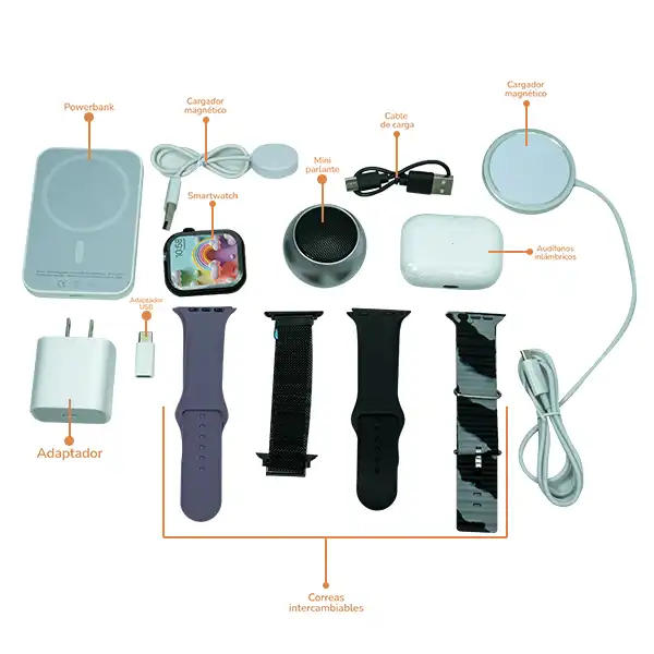 El Combo Smart Watch H10 es ideal para quienes buscan comodidad, libertad de movimiento y buen sonido en un formato compacto. Su diseño completamente inalámbrico elimina cables molestos, permitiéndote disfrutar de música, llamadas y contenido multimedia con total comodidad en cualquier momento del día.
