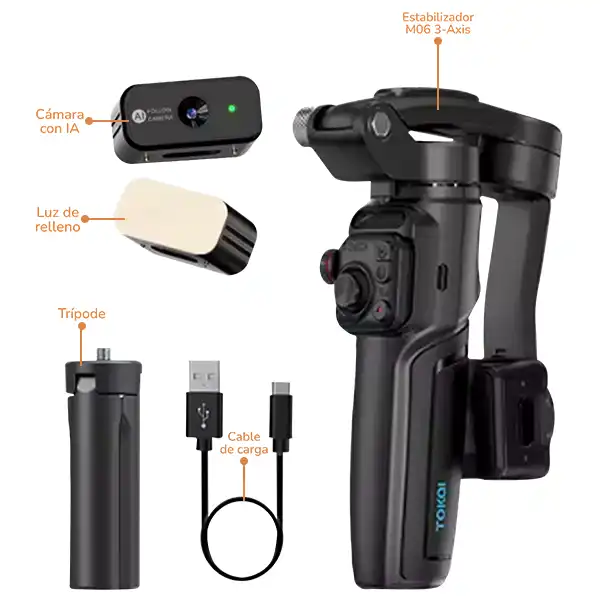 El Estabilizador M06 TOKQI con seguimiento inteligente por IA es la herramienta perfecta para creadores de contenido, streamers, profesores, influencers y videollamadas profesionales. Su tecnología de seguimiento automático permite que la cámara siga tus movimientos de forma precisa y fluida, manteniéndote siempre centrado sin necesidad de ayuda externa.