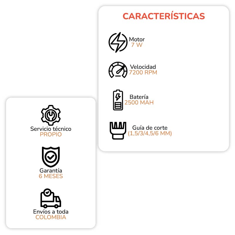 Al ser inalámbrica y recargable, ofrece libertad total de movimiento, facilitando el trabajo continuo sin limitaciones de cables. Además, su diseño ergonómico y portátil permite usarla cómodamente durante largas jornadas y llevarla a cualquier lugar, siendo ideal para viajes o trabajos a domicilio. Los 4 peines guía incluidos amplían las posibilidades de estilo, adaptándose a diferentes largos y técnicas de corte.