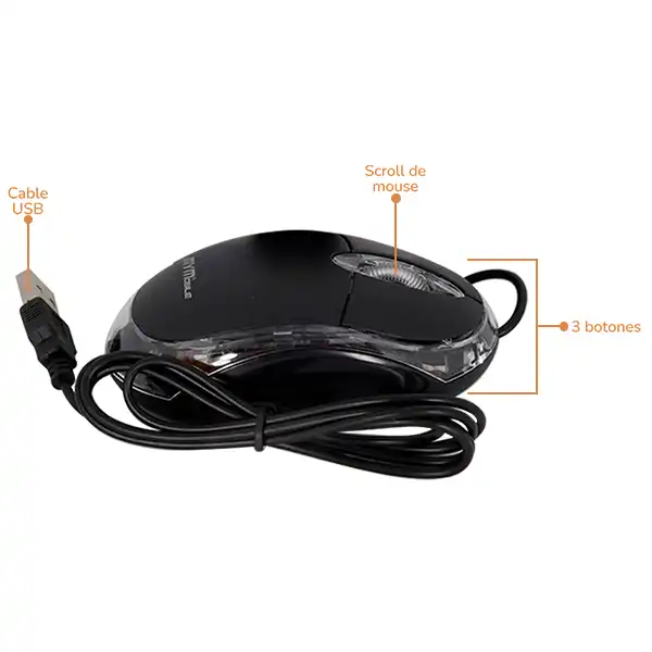 El mouse MS118 es una herramienta diseñada para ofrecer practicidad, eficiencia y facilidad de uso en tareas diarias. Gracias a su conexión USB cableada, proporciona una experiencia estable y continua, eliminando la necesidad de baterías o recargas y asegurando un funcionamiento inmediato en todo momento.