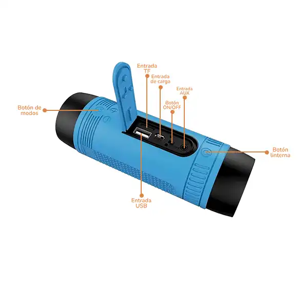 Pero eso no es todo: también puedes utilizarlo como batería externa (power bank) para cargar tu teléfono móvil en momentos clave. Ligero, potente y multifuncional, este parlante es perfecto para quienes buscan versatilidad sin sacrificar calidad.