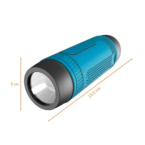 Su micrófono omnidireccional integrado te permite atender llamadas con total nitidez, mientras que su conector de audio de 3,5 mm brinda la opción de compartir música vía cable si lo prefieres. Además, cuenta con una luz LED de emergencia, ideal para apagones o situaciones inesperadas, y una funda de silicona suave y antideslizante, disponible en varios colores, que lo hace resistente y cómodo al tacto.
